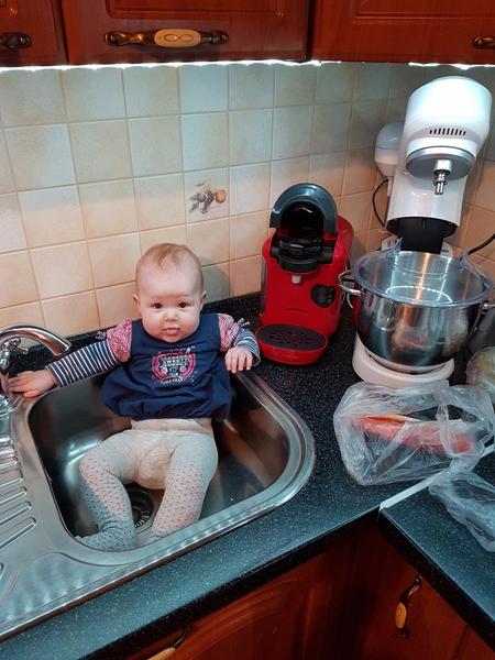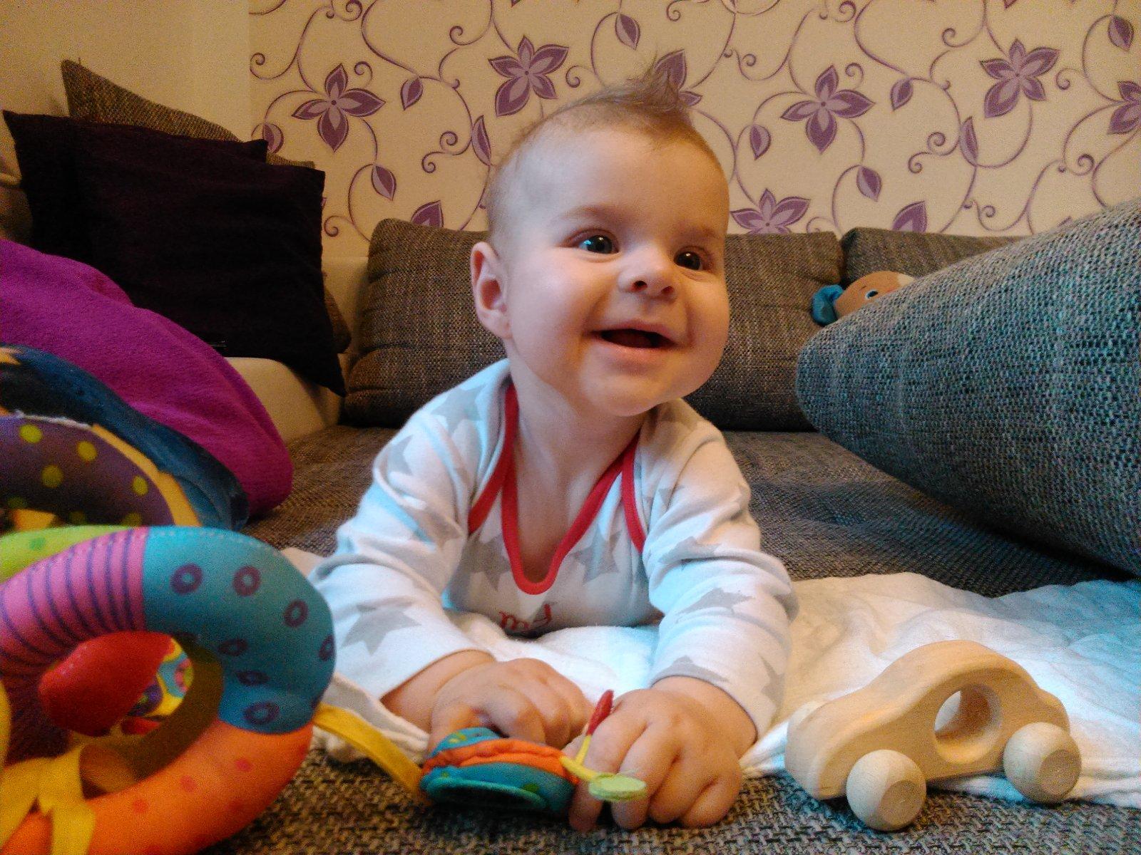Naša Ninka,6mesiacov aj týždeň....papáme všetko,dva zúbky vonku bez problémov,otáčame sa a začíname plaziť. Naše slniečko ❤