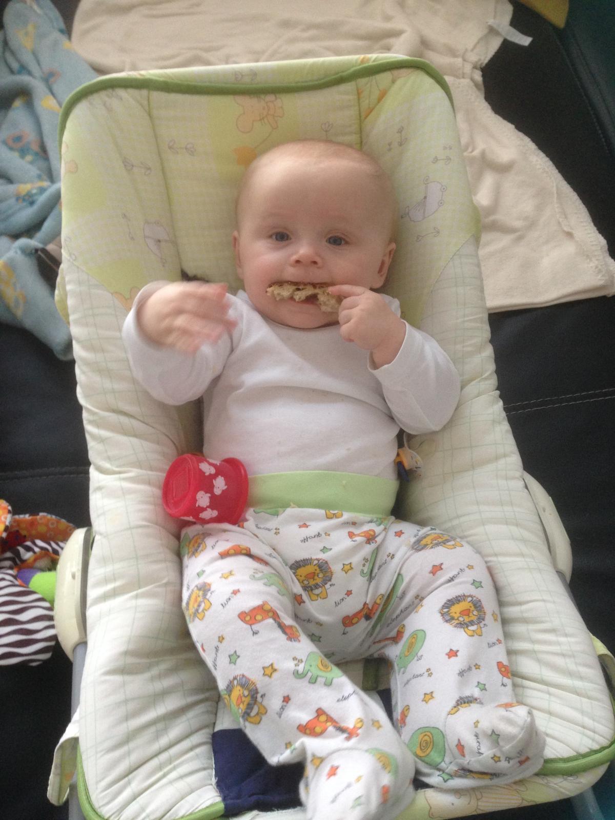 Kojit som nechcela, je na umelom mliecku. Prikrmy papkanvsetky s radostou, hlavne ovocne nestihame pomaly ani naberat ako otvara pusinu. Vcera dostal prvykrat korku chleba tak si cmulal. Zub ani jeden a dneska prvykrat sa pretocil z bruska na chrbatik. Lenivec 😂. V noci spi ukazkovo 8.30-5.30. Proste nadhera. Kupila som mu teraz jantarovy nahrdelnik, ked mu pojdu zubky, aby sme boli pripraveni. Este ho musim nabit a ocistit.