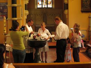 Inak babenky, tu je fotka krtsinovej torty v letnom prevedeni a my v kostole.