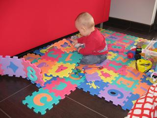 vcera som mu skusila dat prvy krat kukuricnu chrumku, polovicu zjedol a druhu zozmolil na seba, ale aspon sa zabavil 😉 vytiahli sme chodak na ulicu...no a najvacsiu radost mame z rozoberania puzzlov 😀 😀