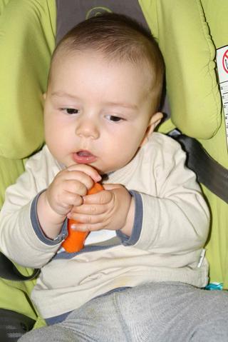 kati ja som Davidkovi nedavala vobec kupovanu kasicku mrkva+zemiak, lebo mi to nechcel papat. Zacinali sme varenym zemiakom+mrkva, po 4dnoch sme pridali petrzlen a neskor karfiol...kalerab...masko a vajecny zltok 🙂