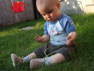aké máte fajn topánočky, my máme len také nijaké, ktoré si aj tak vyzúva, takže najnovšie mu znovu dávam len ponožky. f ešte ani riadne nelozí, len sa pohupuje. akurát vie ísť dozadu, ale to mu je dosť na figu, keď má cieľ pred sebou.