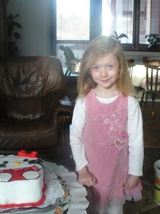 Réka bude mať zajtra 4 roky, nakoniec som jej objednala tortu aj do škôlky, ráno som ju odfotila, tešila sa ako malá žabka: