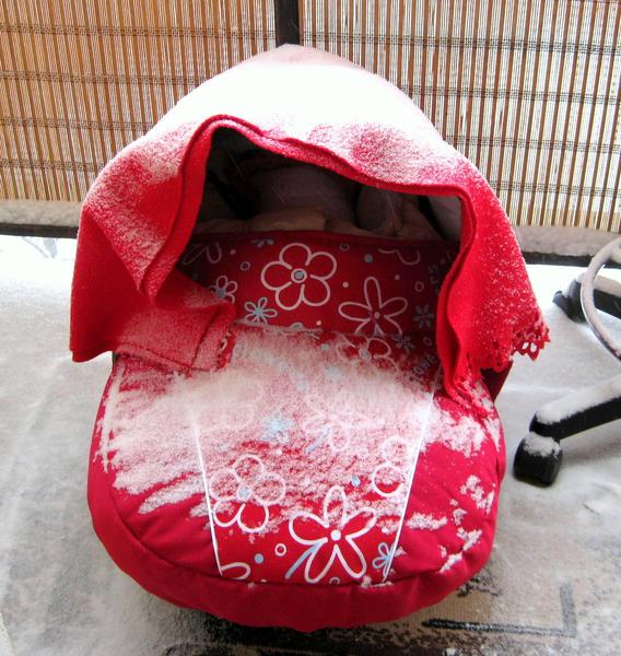 No len 30 minut nam vysla finta s podbradnikom, tak skusame novu alternativu 🙂 kedze nemame balkon a byvame v dome, ulozila som ju do kociara a dala do kupelky s otvorenym oknom 🙂))) zaspala. hoci na 20 minut zas, ale potesi 🙂 minimalne sa najem 🙂