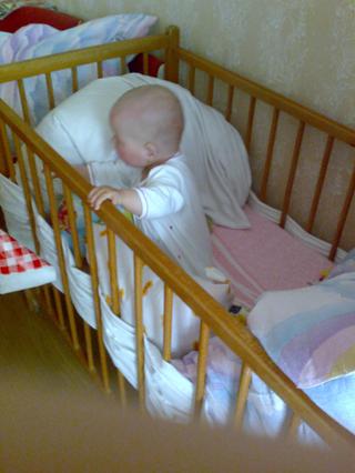 ahojte dievčatá ani my nelozíme ešte, malá si nevie sadnúť z lahu len z pololahu a od soboty robi toto 😀
