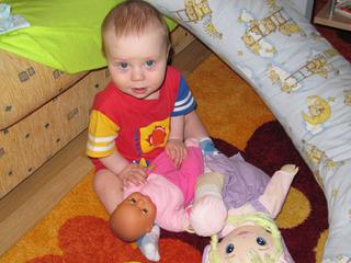 Neviem, ci je Martin velmi sikovny, Katka mi uz ako 10 mesacna normalne behala, co mame kamosku rovnako staru ako je Martin, tiez uz lozi, ale zatial nesedi, kazde dieta je ine. Skor si myslim, ze to starsi surodenci nejako motivuju tych mladsich...