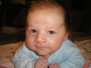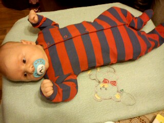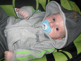 Tak mi sme hore od piatej a to od dvanástej bol tri-krát hore, ale asi sa prejedol lebo o piatej sa pučil a aj mu dost vygrclo, no ale ked je niekto malý pažroš 😀 a mna dnes caká užasný den ked som tak dobre ,,doružova" vyspatá, pridávam foto mojho 6 kg fešáka.