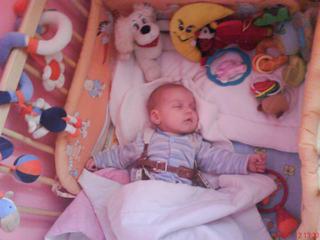 jej baby,nasa mala spinka v postielke! 😲 Vcera tam poobede ,,vydrzala,, 2 hodiny a dnes zase spinka tam.Bola uz aj hore,poobzerala sa,kde to je,pocuckala si pasticky [az ju nadrapovalo,co si ich hlupucka strkala priliz hlboko do pusy]a zaspala nanovo.Tusim si konecne zacala zvykat na postielku 😀