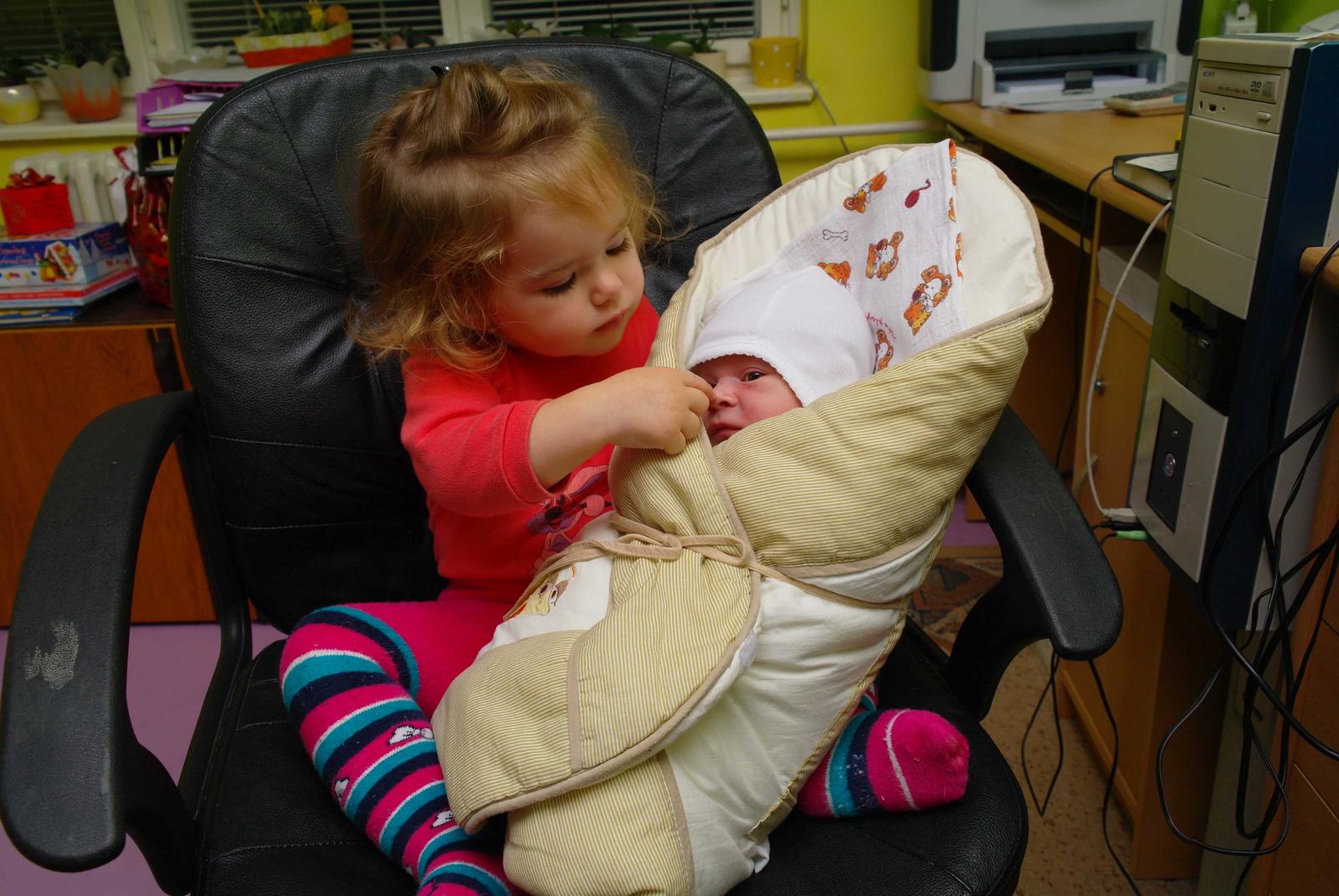 Malinky je super...Ninka ho zboznuje, stale ho kontroluje a ohlasuje mi, ze Matko place...ked ho idem umyt, musi byt pri tom, nosi mi plienky a celkovo mi pomaha, co som prekvapena. Vobec nanho neziarli, coho som sa hlavne bala.... Proste som velmi spokojna so vsetkym ako sa to cele vyvýja 😎 😎