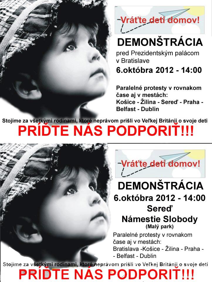 pridajte sa!Sirte letaciky mailami svojim znamym,tlacte a rozdavajte,kto si mysli ze sa ho to dnes netyka uz o tyzden alebo o mesiac zisti ze sa to tyka nas vsetkych.Nejde tu len o deti odobrane rodicom v Uk,poukazujeme aj na neschopnost nasej vlady konat a branit svojich obcanov v nudzi!