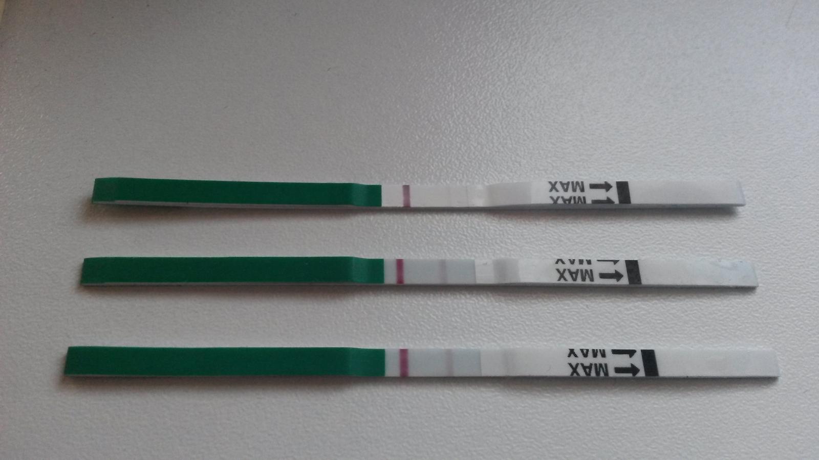 No tak robila som si test, vrchny je z predvcerajska a tie 2 podnim dnes rano... Myslite ze tie ciarky su dostatocne silne? Ked niektore maminky tu daju test aj 4 dni pred ms a maju riadne kolajnice a ja len take slabe ☹ dnes resp. zajtra je den ms.. verim a dufam ze nedojde