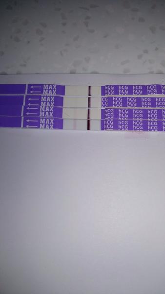 @lucka261177 asi tyzden, a testy aj silneli ale velmi slabucko a ano potom to prislo ako MS. Bola som na HCG a bolo len 10...
