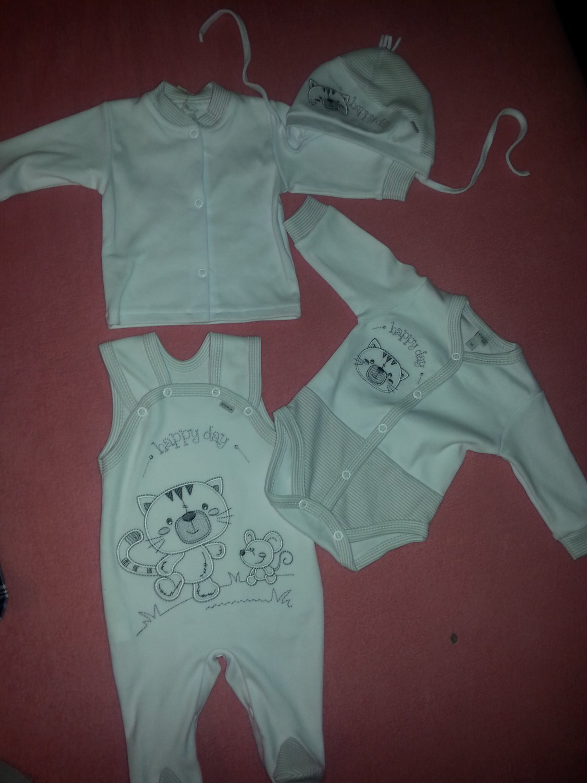 Ja som dnes kupila ciapocku, 2x ponozky, 2x podbradnik, jedno koselove body (to kupila babina) a este do porodnice malemu supravu..teda ked budeme odchadzat z porodnice tak aby nieco pekne mal. Vraj je to taky uz zvyk. Neviem ci to tak mas aj Ty. Namna pomaly moja mamina vybehla ze to musiiim..to ne len tak u dupackoch odist z nemocnice. To musi mat take oblecenie. No tak maaa 😀 a este 2 ortopedicke nohavicky..ale asi som urobila hlupost lebo som kupila pre novorodenca..a to ako som vsimla ked budem balit na siroko tak to bude male..a aj mi ktosi vravel ze nech kupim vacsie cislo..no ale to bola nakupna horucka..a doma som na to prisla ze ja blbaaaa 😀 ale nevadi..nestali majland 😀