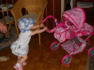 Maťko sa mi prevčerom postavil v postieľke a včera celý deň trénoval popri nábytku, tak som sa celý deň od neho nepohla. Teraz dočiahne aj gombíky na dvd tak je mm z toho na nervy lebo ho stále zapína a vypína.