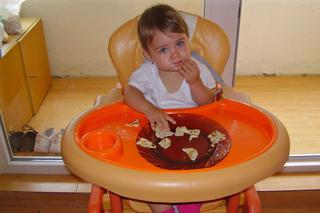 teraz som sa rozhodla ze ked uz tak pekne kusky sama papka ze kupim umely tanier a nakrajam jej ovocie aby mohla pocas dna uchytat
