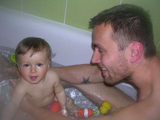 michalko dnes zaspal o pol deviatej!!!!normlne chodime pred desiatou spat.po veceri spistil huronsky plac,nechapem z coho a uplne sa zadusal od placu,tak som mu dala dudku do ust a pritisla som si ho a netaram ked poviem,ze do 10 sekund bol tvrdy ako stolverka 😀 teraz stale buva,no len cakam kedy sa preberie,lebo ho este prebalit musim.nemoze byt celu noc v plienke,ktoru ma od pol siedmej.tazke tak.idem ja adelu pozerat-dnes je tam mirko satan,moja pubertalna laska.toho si nemozem nechat ujst!!!! 😝