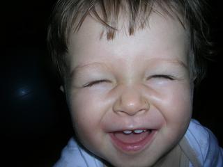 takze my sme oslavili narodky aj krstiny celkom dobre, az na tu chorobu...i ked yoan to zvladal celkom dobre...neviem, odkial to dieta berie energiu...narodky sme nejako ani moc neoslavili...len v piatok vecer dala clarisse na stol malu torticku s jednou svieckou, ktora hrala "happy birthday" a yoan bol tym plamenom jak zhyponotizovany 🙂 dostal moj vlacik a hned pochopil naco to sluzi a robil brm-brm...no uplny chalan 🙂 a v nedelu sme rano sli do kostola krstinky...prislo mi to trosku jak fraska, bo tam kazdy kazdeho poznal, setci si tam tykali a stale spliechali do toho dake poznamky a krstny otec dosiel v total roztrhanych rifliach a ked mal drzat sviecku, tak ju dal drzat radsej svojmu malemu baptistovi...no hruza...kazopadne, ked prisiel akt krstenia, tak yoanovi sa to velice pacilo a farar minul na neho celu svatenu vodu 😀 potom sme sli do jedneho hotela na slavnostny obed a pak sme sa presunuli k nam, kde sme mali este tortu a boli sme az do vecera...pozvana bola aj opatrovatelka yoanovho bratranca baptista a sesternice mathildy, ona je anglicanka a este moc nevie po francuzsky, tak som si aj s nou dobre pokecala...