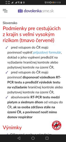 Najistejsie ist do CR autom, vtedy nepotrebujes test. Slovensko je tmavocervene, s vysokym rizikom, ale podmienky vstupu su vsade rovnake ako pri nizkom.