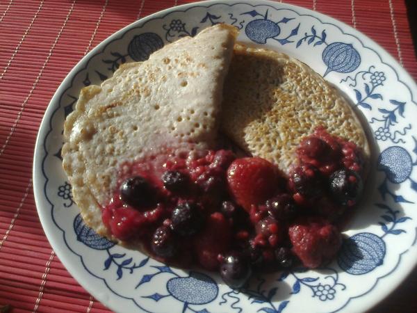 ty si ich robila podľa receptu, čo si dala do knihy, že? ja už strašne dlho robievam palacinky bez mlieka a vajec, keďže som sa stravovala oddelenou diétou. ale ja ich robím trošku inak: 1 hrnček hladkej múky, 1 hrnček polohrubej múky, 2,5 hrnčeka minerálnej vody sýtenej (vždy dávam budišku, čerstvo otvorenú, aby nebola vybublinkovaná), štipka prášku do pečiva, trošku soli, 1-2 vanilkové cukry a ešte kryštálový cukor podľa chuti. Aj tieto sú naozaj výborné. Iné už ani nerobievam. Sú na nerozoznanie od takých, kde ide mlieko a vajce.