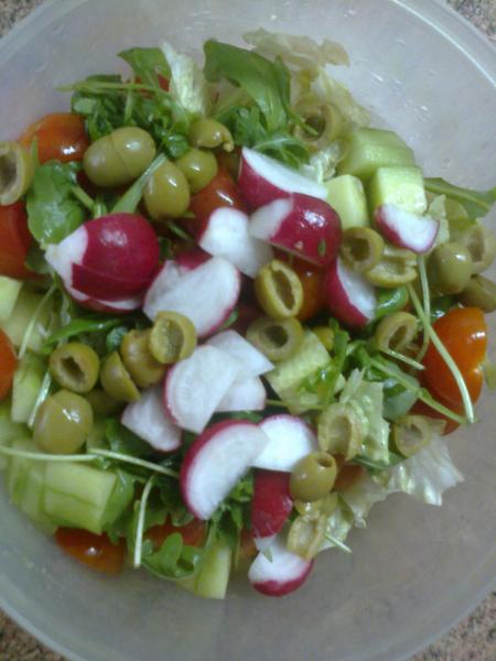 Dnes B - obed: zelerove hranolky, morcacie masko na prirodno s cibulou a horcicou, zeleninovy salat, cajova lyzicka zmiesana s kecupom. Som natrieskana :D nechcela som verit, ale zelerove hranolky su fasa :D