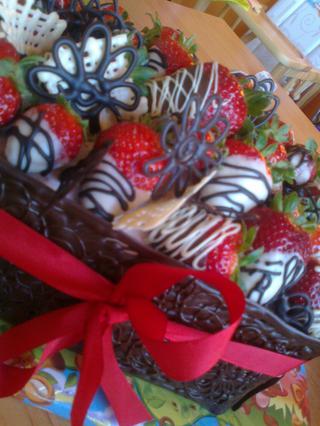@cessy no hlavne manželovi tie jahody ruky podávali ked som ich mala na plechu s tou čoko poliate....ale viacej som nemala lebo som ledva zohnala jeden košík....tak som musela prázdne miesta zamaskovať čoko ozdobami.