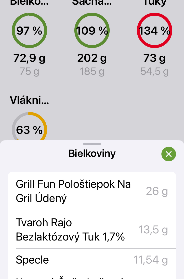 @nataliik no na moju váhu sú 2g bielkovín dosť ťažké dosiahnuť. Kcal mám vždy v zelenom, neprekračujem. Mám to tak zatiaľ 2 týždne. Do toho aj silovo cvičím