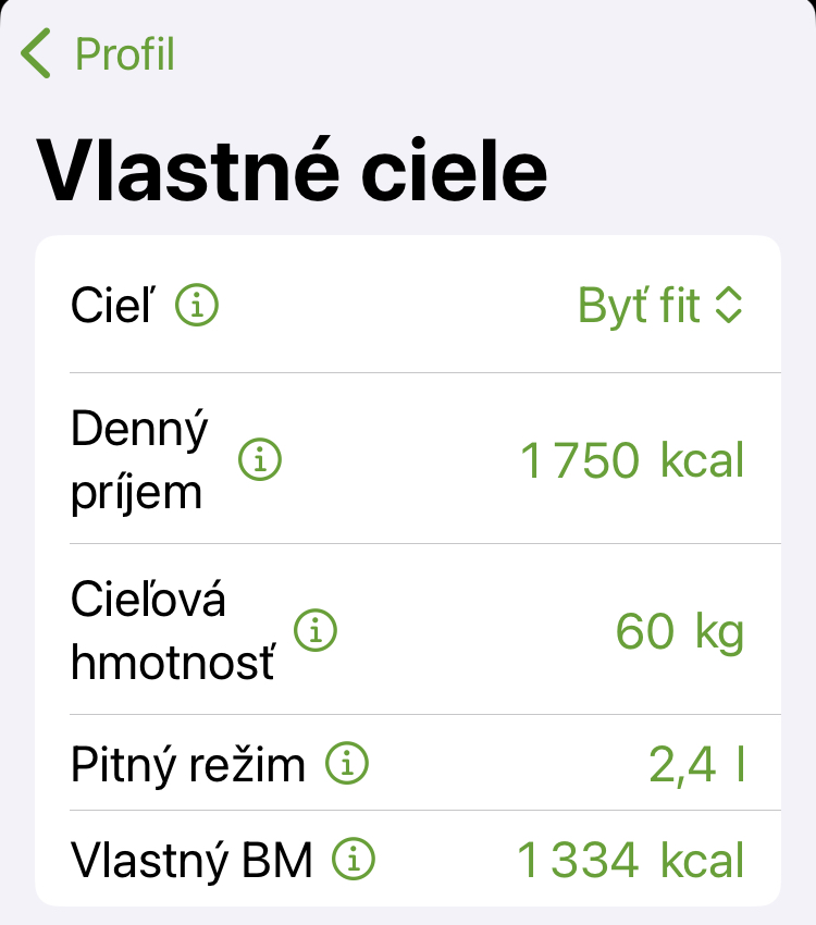 @nataliik mám normálne kalorické tabuľky, bielkoviny by mali byť 2g na kg váhy. Tá kalkulačka je dosť divná. Vypisuje mi tam bazal 1400 čo je extrémne malé číslo. Môj bazal ( 1620) mi vypočítali na profi meraní, kde aj odporučili 2g bielkovín na kg váhy, aby som udržala svaly chránené