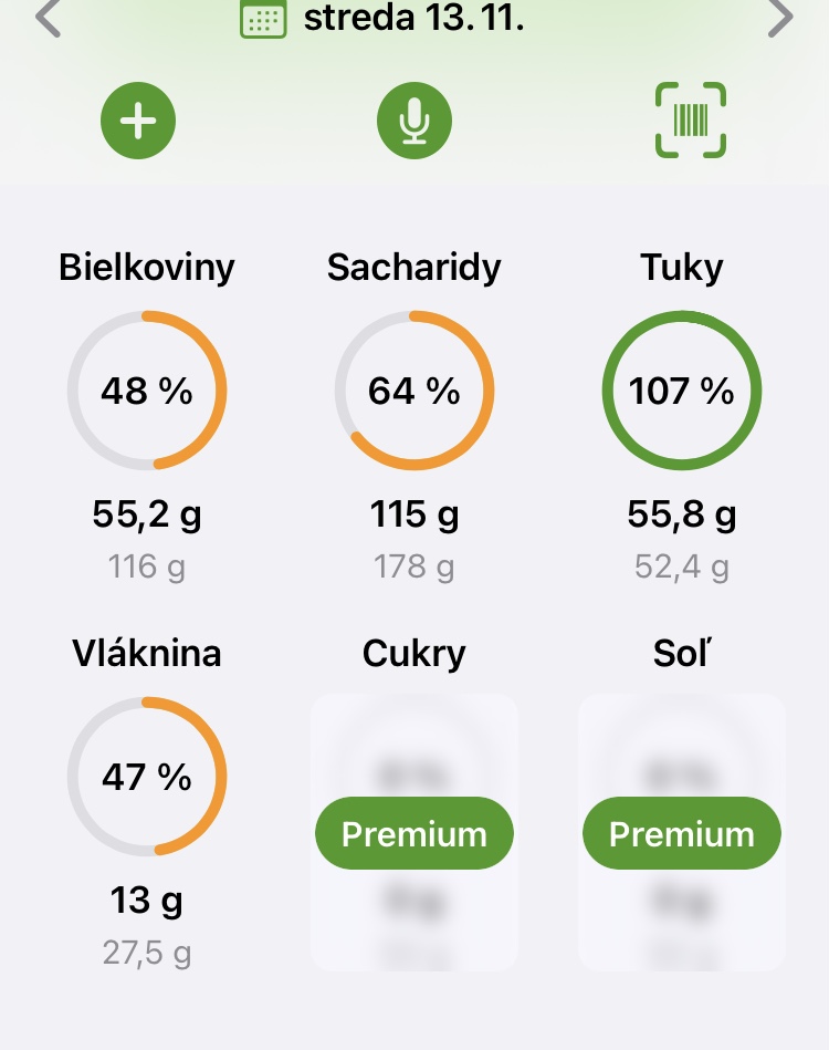 Bielkoviny ako tak dodržím, sacharidy (keď nezozerem to čo je uvarené pre ostatných) tiež. Len tie tuky a vlákninu vždy presvihnem a to varím na vode, mäso jem iba kuracie 2-3x v týždni, sem tam nizkotucny cottage, občas lyžicu bieleho 3% jogurtu do šalátu (pokrajana trochu osolena zelenina). Orechy vážim na gramy lebo co sa tých týka som slečna zravka 🙈
