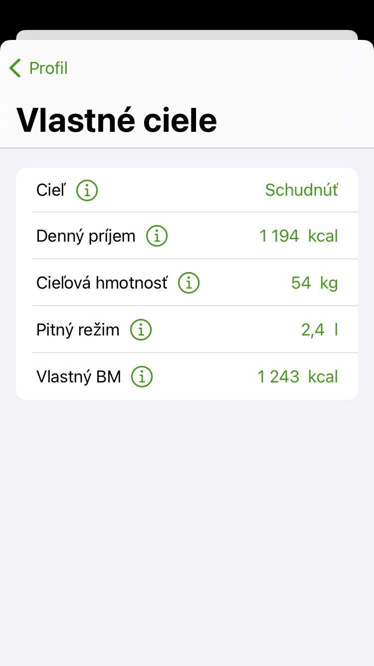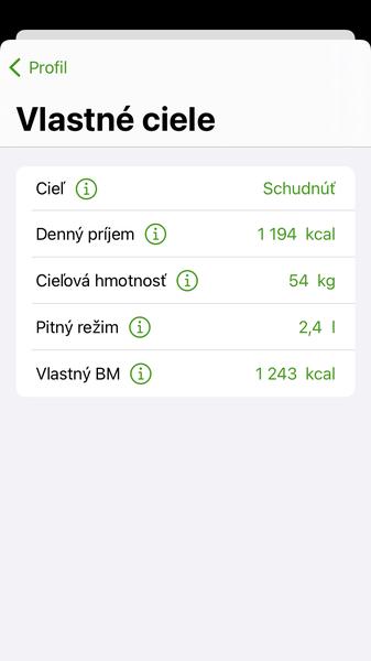 Denny prijem si vypocitaj inde a napis si ho tam rucne,vypni aj aktivitu aby to tam zbytocne neskreslovalo. Cielova hmotnost je nepodstatny udaj. a nastav si to spravne lebo pod 1200 kcal denne jest je nezmysel totalny