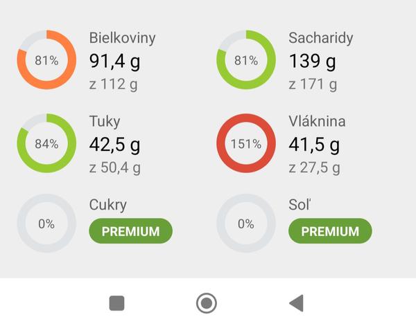 Prosím ta, co jedávaš, ak máš cez 100% vlákniny a malo tuku? Lebo ja som dnes mala syr na grile a hneď mi vystrelili tuky, bielkoviny prekročí bežne, ale vláknina nehrozí... A to aj dosť báb rieši, ze vlakninu nenaplní 🤷♀️