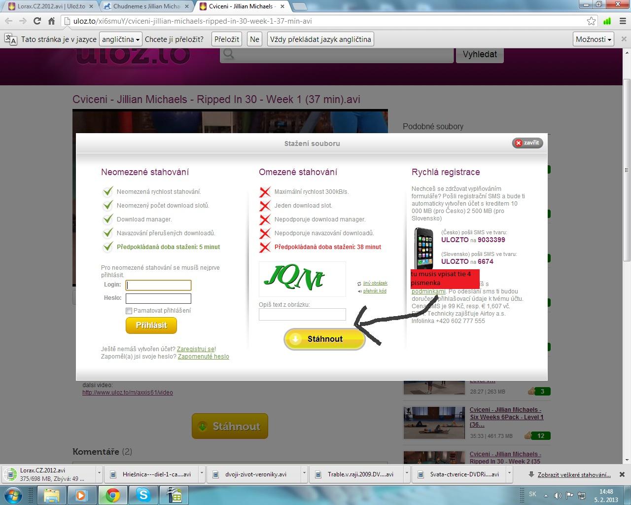 @jankapiknova no ak mas, ak nemas ( ani ja nemam ani nie som registrovana ) tak staci ak odpises tie pismenka z obrazka. ja tak stahujem denne aj 4 filmy kazdy den 😉
