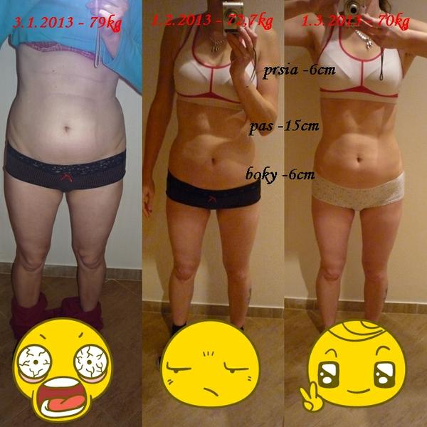 @blcha ...tak mne sa podarilo schudnut dve kilecka, ale v centimetroch je to uplna parada, tam to islo pekne dole a najma zo stehien 😵 a aj z prs 😕 😅 ...dietu nedrzim, akurat papam jedla ktore su nizkokaloricke, veeeeeelmi vela pijem a jem vela zeleninky a hlavne som sa naucila jest viackrat v mensich mnozstvach ako sa to vsade pise 😅 ...a inak ani ja nie som na diety, cvicenie je podla mna ovela efektivnejsie ako diety 🙂