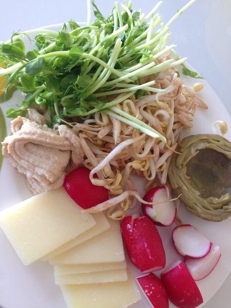 desiata: jogurt biely, obed : pečené maso, uhorkový šalát a varené zemiaky /ale tých fakt máličko/