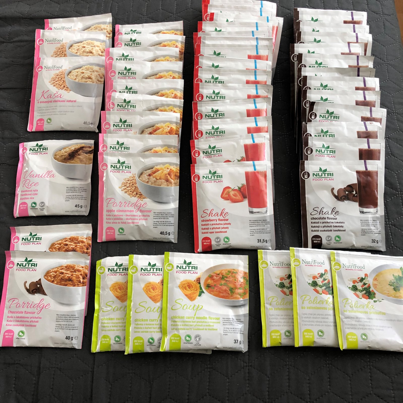 Predám sáčky Nutrifood 28 koktejlov (jahoda + čokoláda) 14 kaší a 6 polievok. Najlepšie všetko spolu.