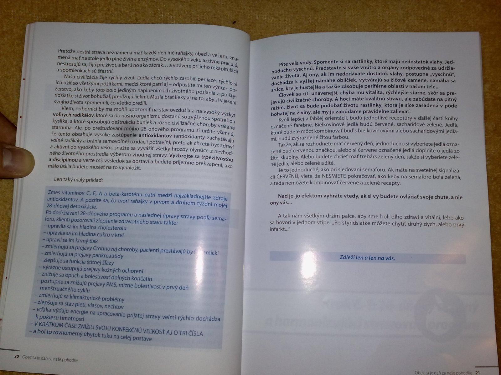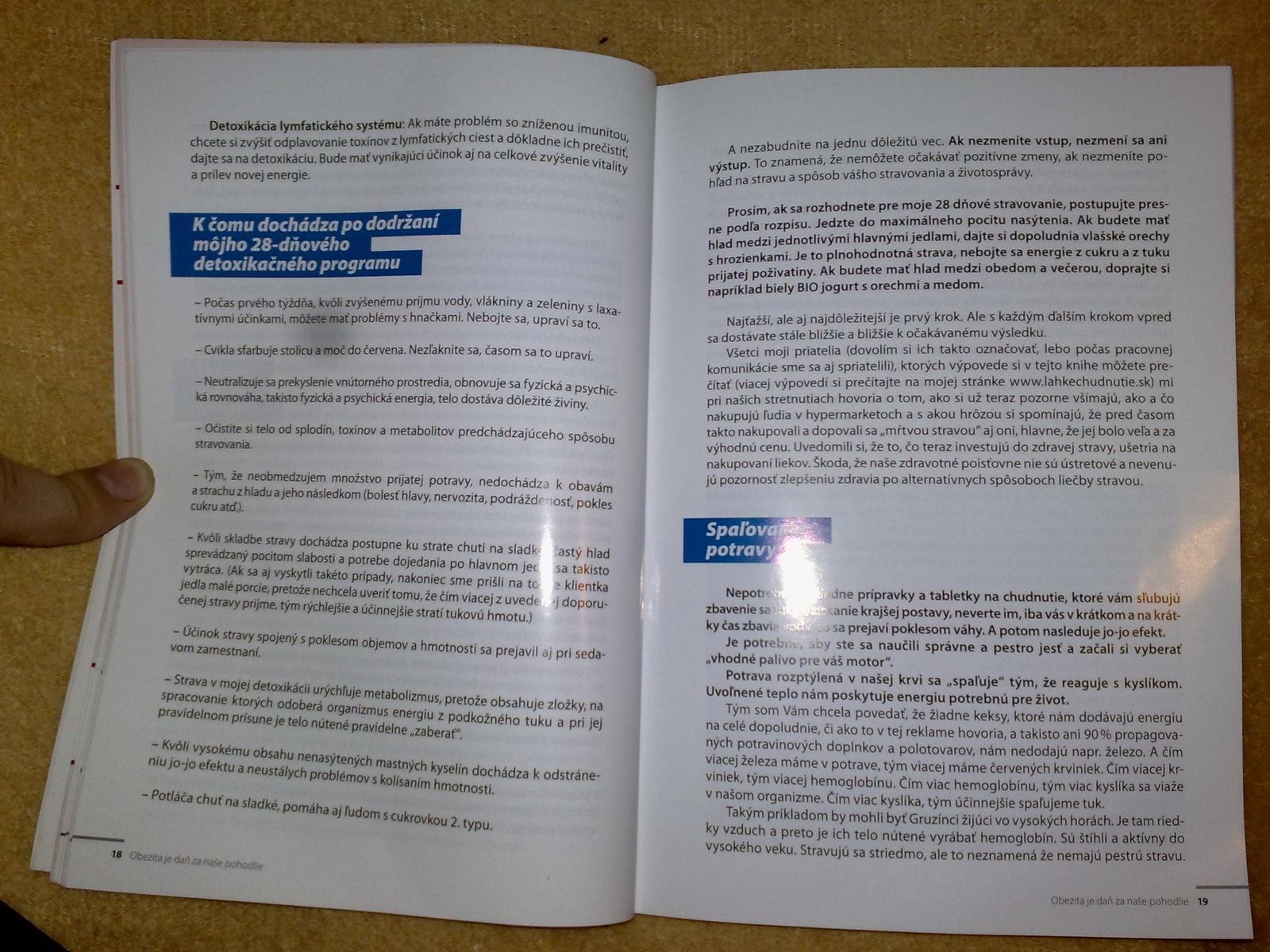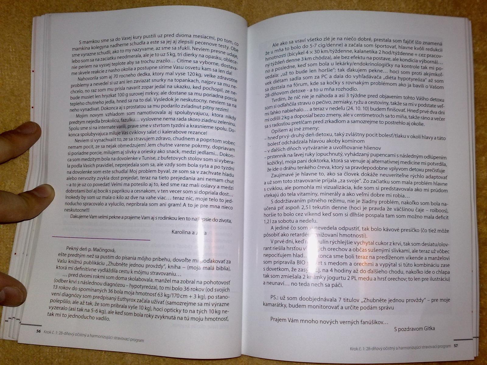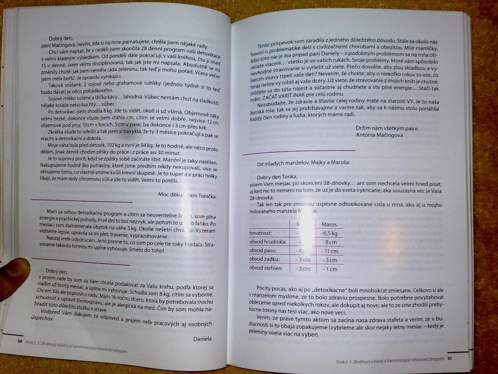 ahojte , ja som to urobila celé, aj následné stravovanie. dokonca niektoré recepty používam a mám obľúbené dodnes, ale musím povedať, že jediná výhoda pre mňa spočívala v lepšej pleti, naučila som sa piť dostatok tekutín. očakávala som, že pôjdu dolu aj kilá, ale to sa nestalo. je pravda, že nemám nadváhu, stravujem sa celkovo zdravo a racionálne celkovo, takže asi nemuselo ísť dolu nič.