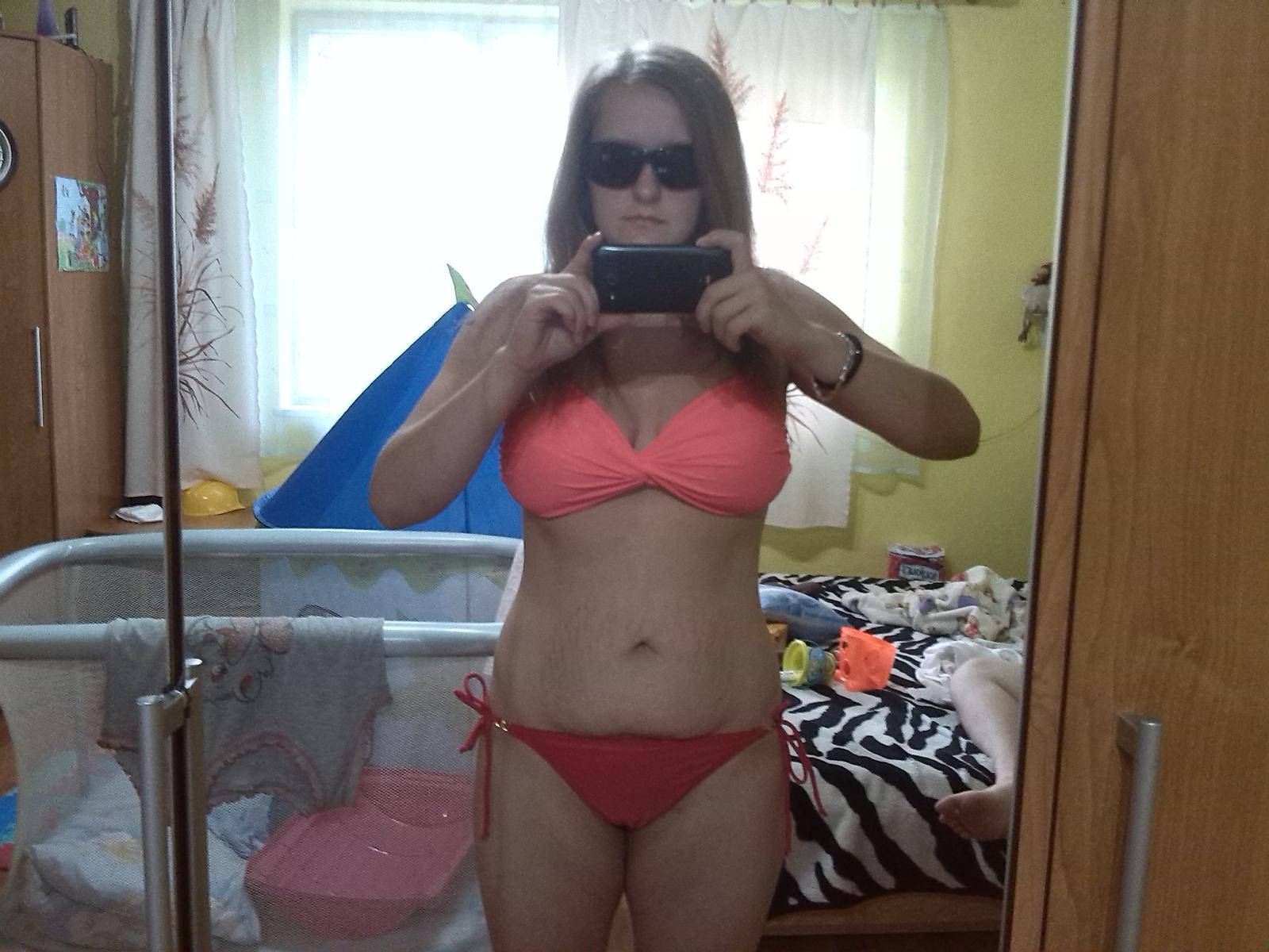 A obdivujem ako viete fotit same seba, ja som to dnes vyskusala po prvykrat, s telefonom mi to nejde vobec, tak som vytiahla moj megafotacik, he-he a nieco sa podarilo 🙂 On je tak tazky, ze vdaka nemu su mi vidiet aj risujuce sa svaly na rucickach 😀 Tak pridavam moje prve selfie a tiez porovnavajuci obrazok mojho brucha spred mesiaca a dnes, zacala som viac zatazovo cvicit a vysledky su velmi super, som maximalne spokojna teda! Vsetkym drzim palce a nevzdavajte to 😉