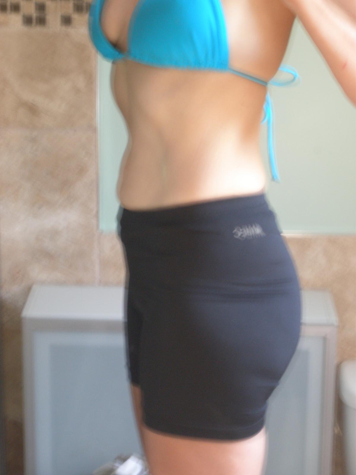 na prvej to vyzera super, na druhej je to uz "pekne" vidno. no a na tretej je brucho ako je a na stvrtej som skusala vtiahnut ale teda zeby bolo ploche sa neda povedat.