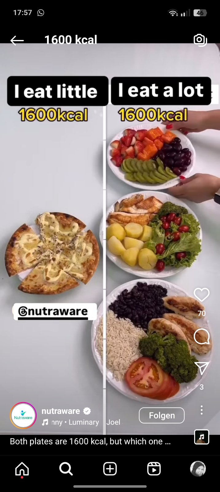 Autorka otázka co ješ bolo skor myslené ake konkrétne potraviny, jedlá za deň zješ. Lebo aj ked dodržíš dane kalorie aj makronutrienty tá sýtost rôznych jedál môže byt rôzna