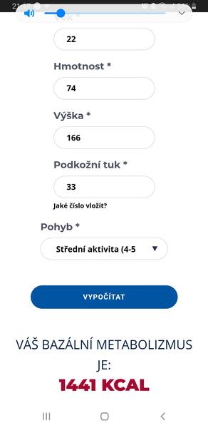 Kalorické tabuľky, žena 22r, 166cm a 74.4kg