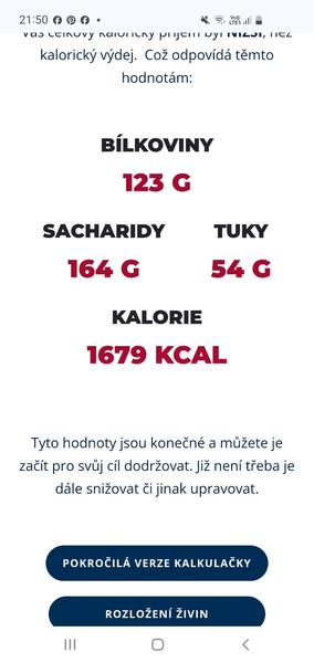 @denkabemommy už na chudnutie. Bazal mi vyšiel 1280. 🤷♀️ ale držím sa toho ze je to orientacne....tabuľky vedia len to co tam zadáme...