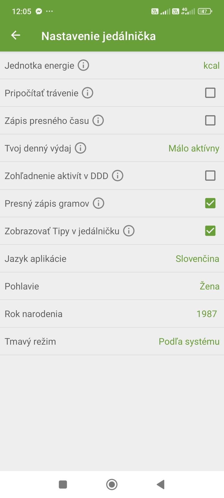 Autorka - stiahni si aplikáciu Kalorické tabuľky, taká zelená ikonka , nastav tak, ako som ti písala (alebo podľa vysvetlenia z tej skupiny, čo som ti odporúčala) a potom hoď printscreen. Každá kalkulačka je nastavená inak, čiže tie hodnoty sa môžu líšiť. Alebo mi napíš súkromnú správu a pomôžem ti s nastavením 🙂