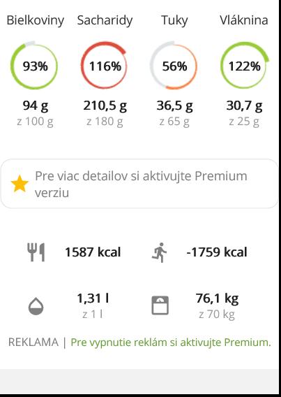 Ahojte ,dnes som si stiahla kalorické tabuľky do mobilu a zapísala dnešok čo som jedla.Pridam foto,je to takto v poriadku vyplnené?Vyplnila som všetky jedlá cez deň,aj pitný režim,aj aktivitu.Vypisalo mi že mám stiahnuť niečo premium aby sa dalo pridať viac jedla.To je potrebné?Za to sa platí.Poradte ako používať tieto kalorické tabuľky.