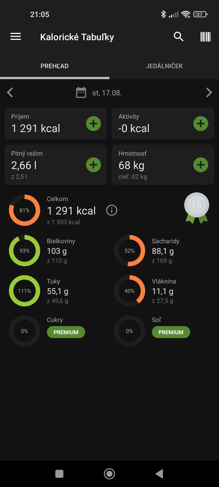 Ahojte ,dnes som si stiahla kalorické tabuľky do mobilu a zapísala dnešok čo som jedla.Pridam foto,je to takto v poriadku vyplnené?Vyplnila som všetky jedlá cez deň,aj pitný režim,aj aktivitu.Vypisalo mi že mám stiahnuť niečo premium aby sa dalo pridať viac jedla.To je potrebné?Za to sa platí.Poradte ako používať tieto kalorické tabuľky.