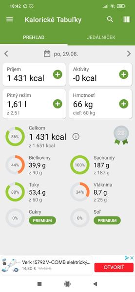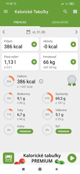 Ahojte ,dnes som si stiahla kalorické tabuľky do mobilu a zapísala dnešok čo som jedla.Pridam foto,je to takto v poriadku vyplnené?Vyplnila som všetky jedlá cez deň,aj pitný režim,aj aktivitu.Vypisalo mi že mám stiahnuť niečo premium aby sa dalo pridať viac jedla.To je potrebné?Za to sa platí.Poradte ako používať tieto kalorické tabuľky.