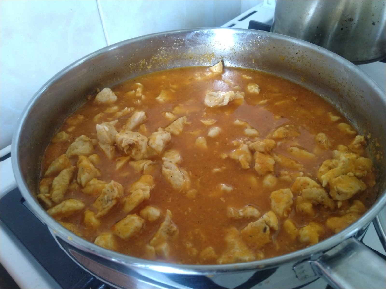 Na obed som mala taký kurací guláš. Klasika kuracie mäso a rozvarené mrkva, paradajka a paprika, potom rozmixované. Samozrejme koreniny + soľ. Milujem tú lecovu príchuť.