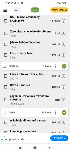 @zuzinka888 tu máte približne čo jem snažim sa to meniť niekedy jem ryby kaše ryžové pohánkové....ku prsiam to mením stále fazuľové struky brokolicu červenú kapustu milujem ....do tvarohu čučoriedky maliny ...len u nás to nemajú stále...A závislá som na špenatovych haluškach cottage a na vrch mozzarella 👌 milujem ja by som to jedla každý deň ... keď mám chuť na sladké tak si zmrzlinu Twister ten má málo kalórie a samozrejme veľa veľa vody
