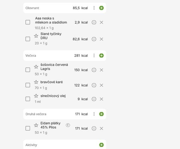 este musim upozornit, ze niekedy potraviny ponahadzujem kadejako, ze napr to co som zjedla poobede, dam do desiaty a pod. dnes som asi len syr dopisala na 2.veceru,a j ked som ho jedla skor. no evadi, dolezite je, ez je tam.