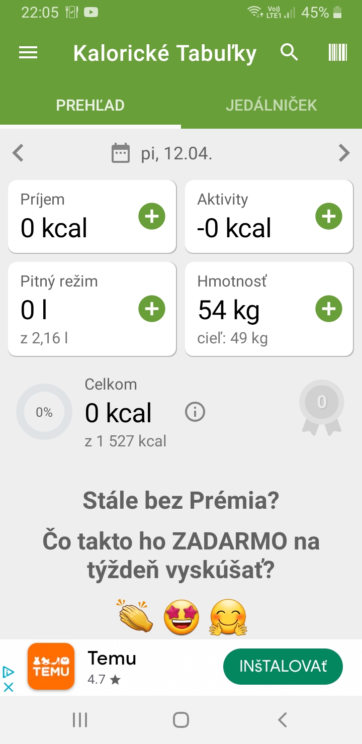Ten prijem plus minus sedi, skratka na schudnutie pod 50 kg nemoze mat zena prijem 1600kcal.. strava+cvicenie(aspon raz do tyzdna 60 min kardio + 2xsilovy trening 60min), bohuzial prechadzkou sa nechudne a ani sa telo nesformuje, ak to teda nie je jemny beh a clovek na sebe nema 10 kg vestu 😐