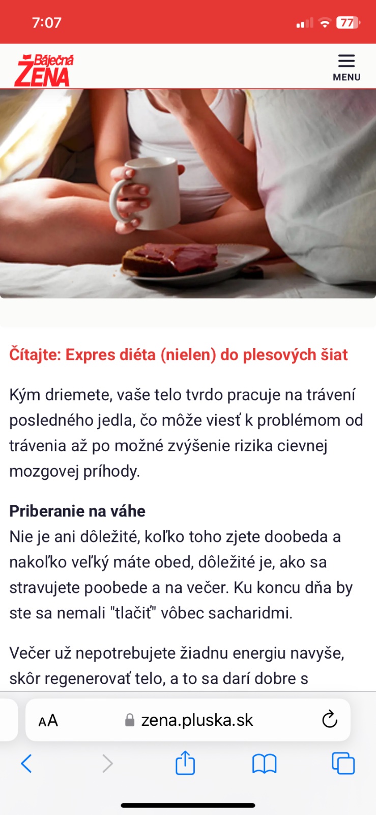 tebe prd pomoze ako tu jedia ine zeny. Každý je iný. Ja som roky jedavala kludne aj o polnoci sladkosti ci vyprážaný syr/pečený hermelín, pizzu. Robila som receocnu a nepribrala som. Spat som isla krátko potom.