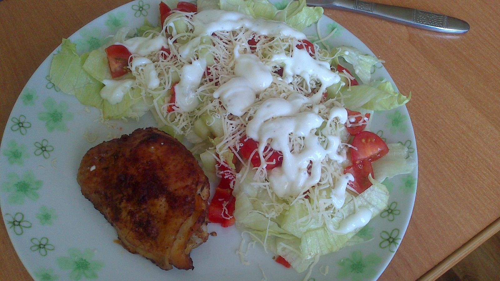 Obed grilované morčacie mäsko marinované v jogurte s cesnakom a uhorkový šalát